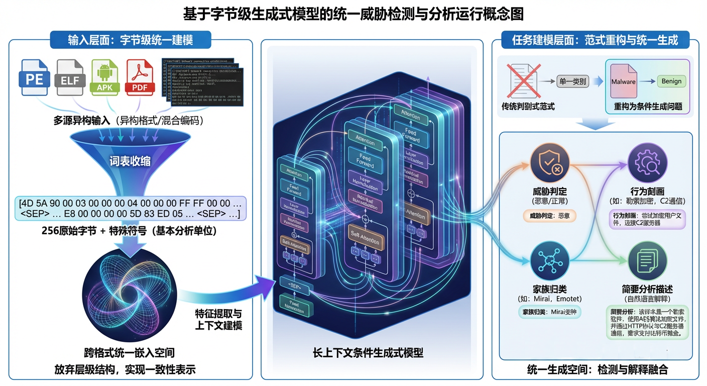 图10:基于字节级生成式模型的统一威胁检测与分析运行概念图