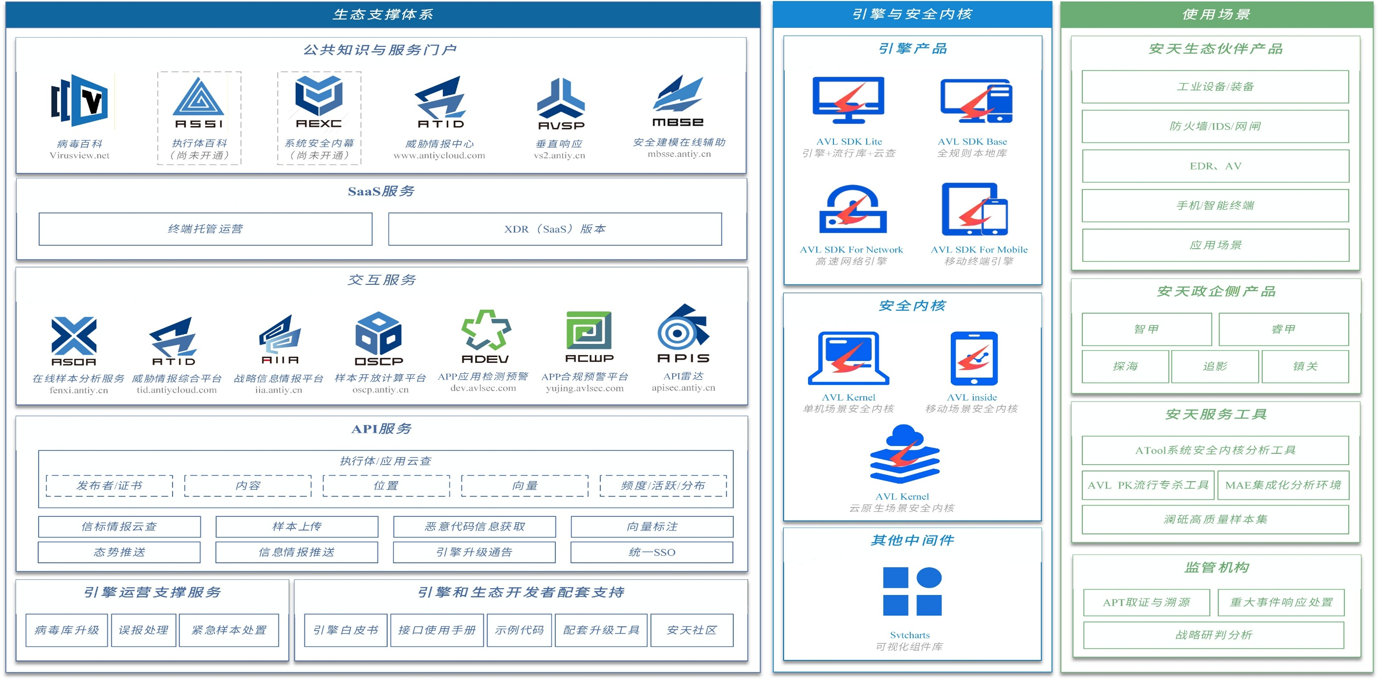 情报与公共知识服务:安天的情报平台将全面为引擎生态伙伴提供支持,通过病毒百科(Virusview.net)我们将为生态伙伴打造个性化的知识服务。