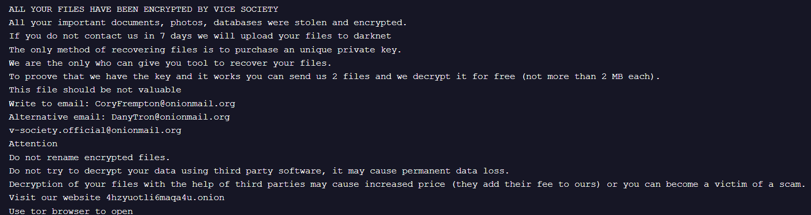 ViceSociety勒索家族概览