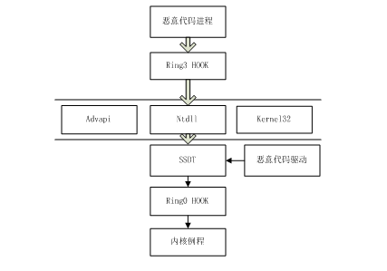 通过内核层的监控可以对驱动的行为进行一定的监控,也可以通过上下层对比,发现一些穿过Ring3的直接调用系统功能的恶意行为。