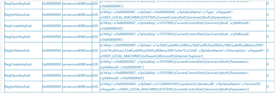 溢出成功后,将会下载执行木马操作,通过其行为可以判断是否具有恶意威胁的样本。对于各种远程控制的木马工具,其基本的行为是具有通用性的,通过动态监控可以发现危险的行为,比如安装,自删除,隐藏文件,添加服务等。