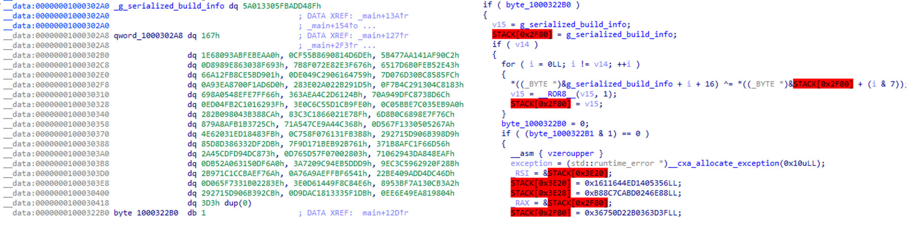 其二进制载荷中存在大量加密静态数据,仅在运行时进行解密,以此规避检测。