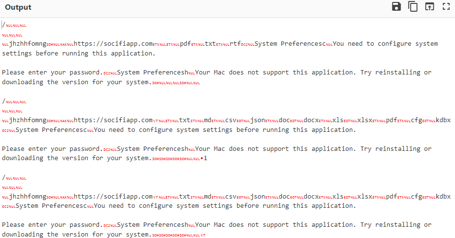 根据其算法对多个不同样本data段中的配置信息进行解密,其配置中均有“jhzhhfomng”、“https://socifiapp[.]com”字符串以及对话框提示文本,主要是窃取文件类型的范围有所不同。