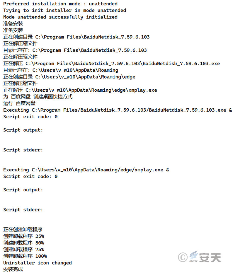 Baidu-2025102902.exe运行后会将正常的“百度网盘安装软件”安装包释放至C:\Program Files目录下并执行安装程序,在桌面上创建快捷方式,并在多个系统安装路径中释放多组恶意载荷,用于后续从中选择攻击载荷。