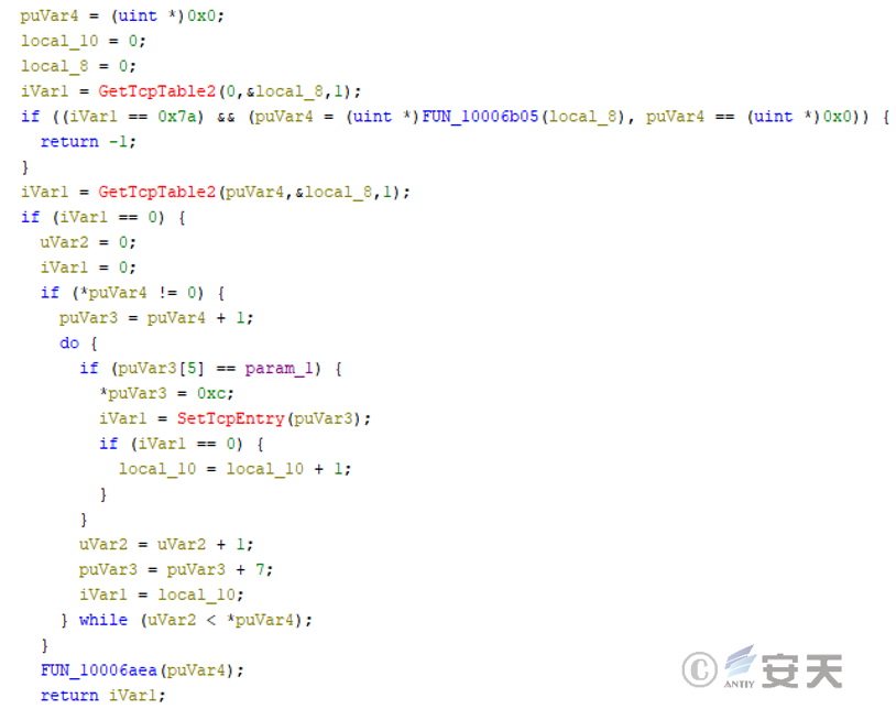 Single.dll文件会遍历指定安全软件进程,循环枚举安全软件的TCP连接表,切断安全软件进程与其远程服务器的网络通信,以便规避防护。