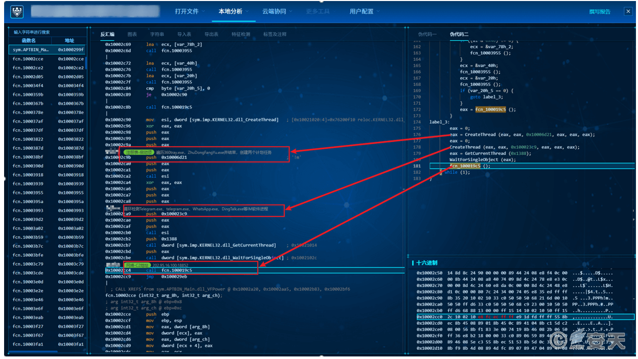 APTBIN_Main.dll会创建两个线程,功能是结束安全软件进程以及创建计划任务等。之后则连接C2服务器202.95.16.100:18852下载VFPower_32.dll文件。